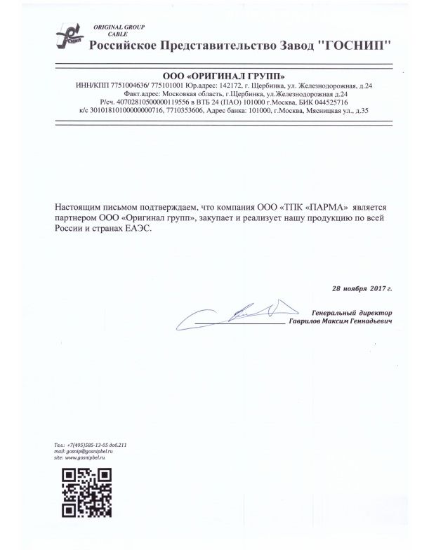 ООО "ТПК "ПАРМА" поставляет полный спектр кабельно-проводниковой и электротехнической продукции. Основная цель нашей компании - предоставить заказчику весь необходимый ассортимент продукции по низким оптовым ценам, отвечающий всем стандартам качества.