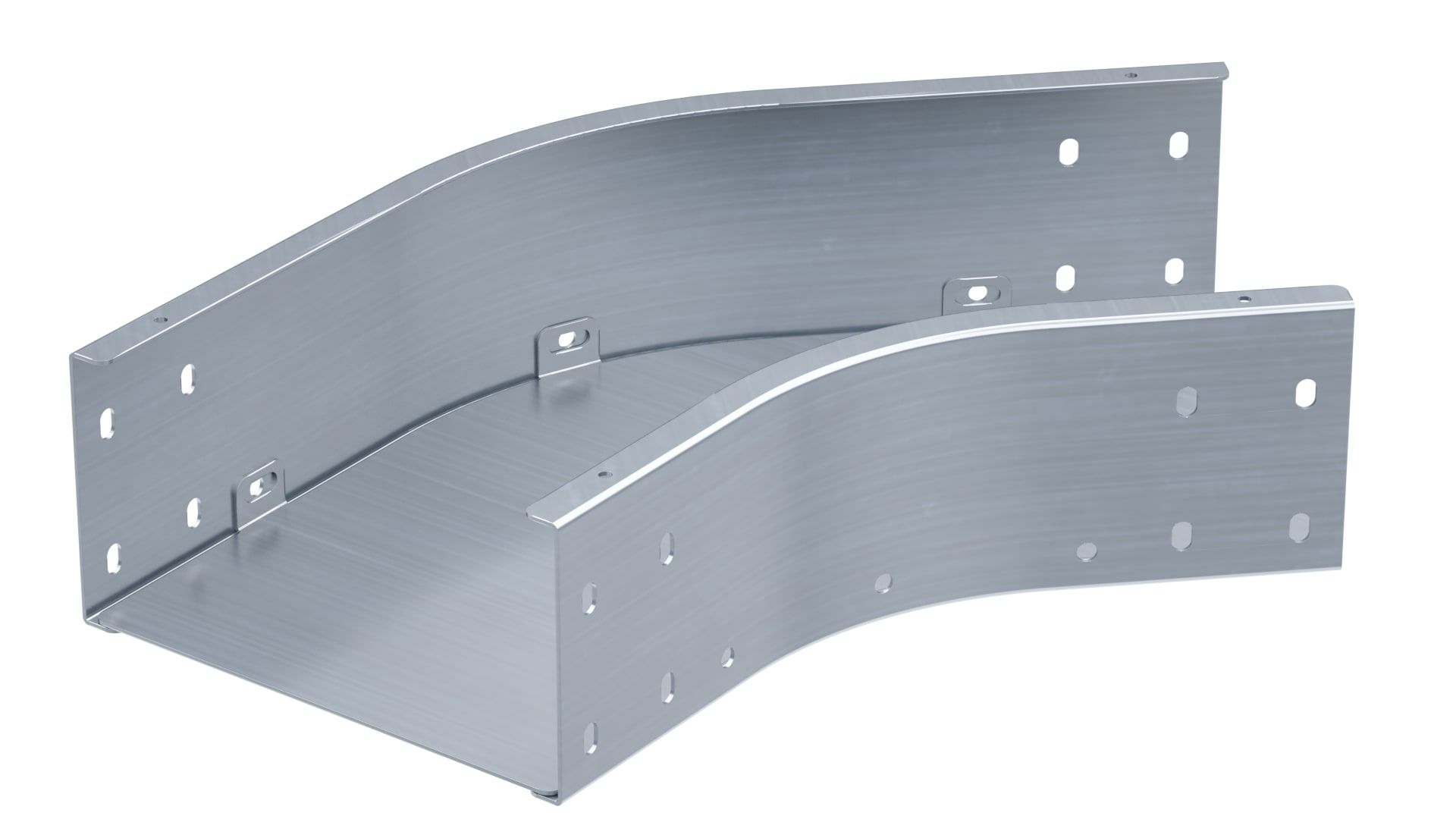 Горизонтальный угол 45 градусов обеспечивает поворот трассы в горизонтальной плоскости под углом 45 градусов. В состав комплектного аксессуара входят детали, необходимые для качественного и надежного монтажа: соединительные пластины и крепежные элементы. Угол применяется с лотками линейки "S5 Combitech" с высотой борта 100 мм и шириной основания 500 мм. Толщина металла - 1,5 мм. Аксессуар представлен в исполнении "Сталь, оцинкованная по методу Сендзимира".